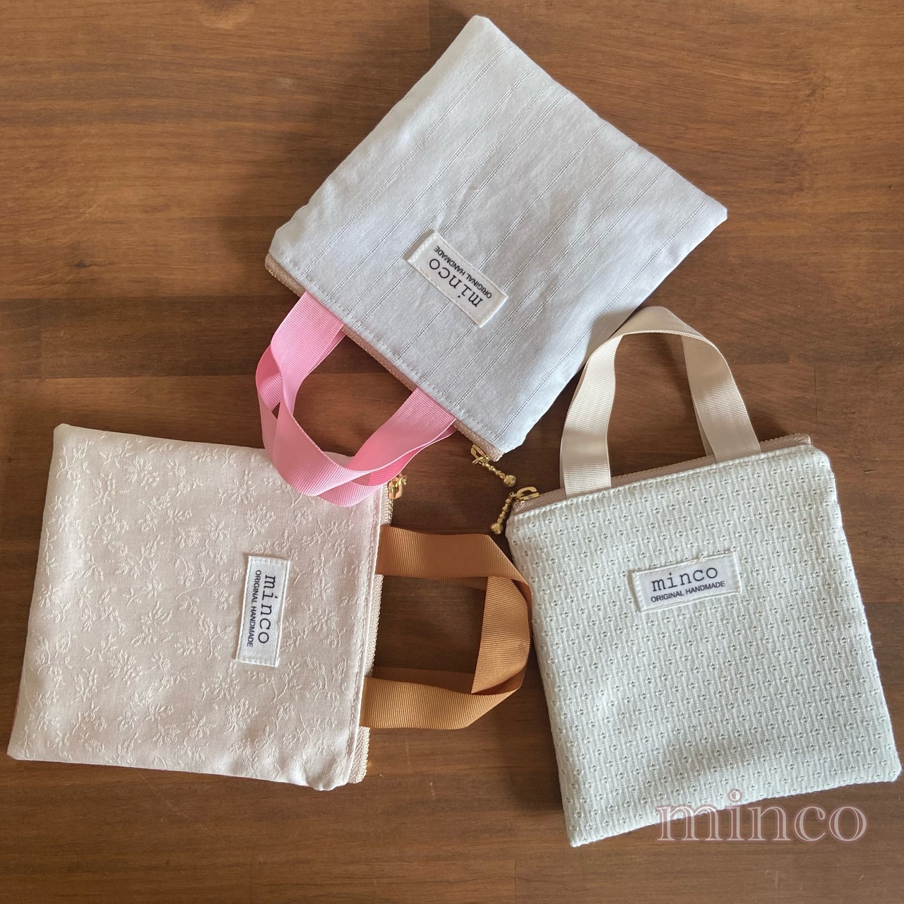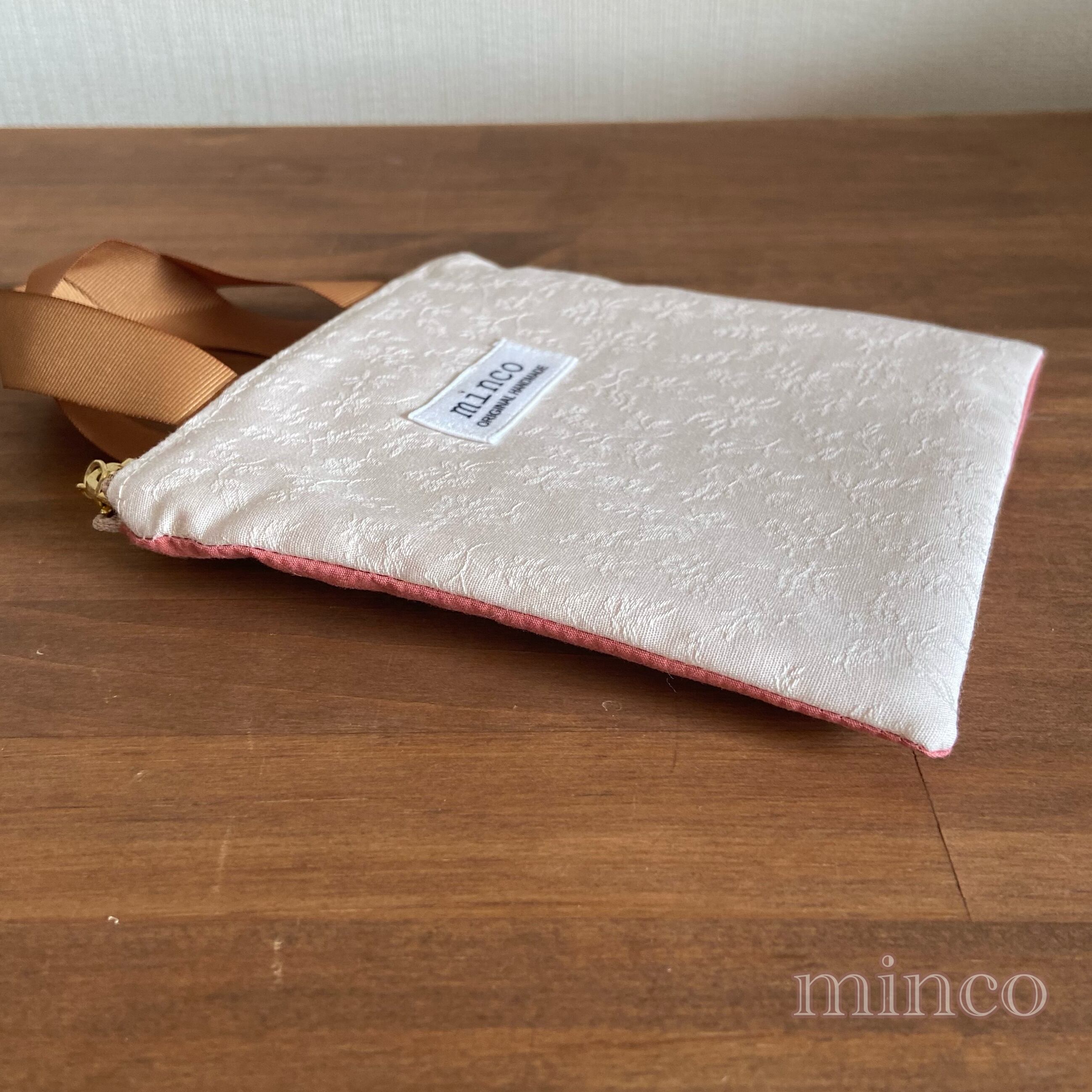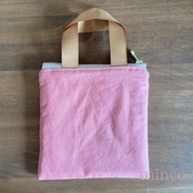 mini保温保冷ファスナーポーチミニフラット(レース生地×ピンク×持ち手ブラウン茶)